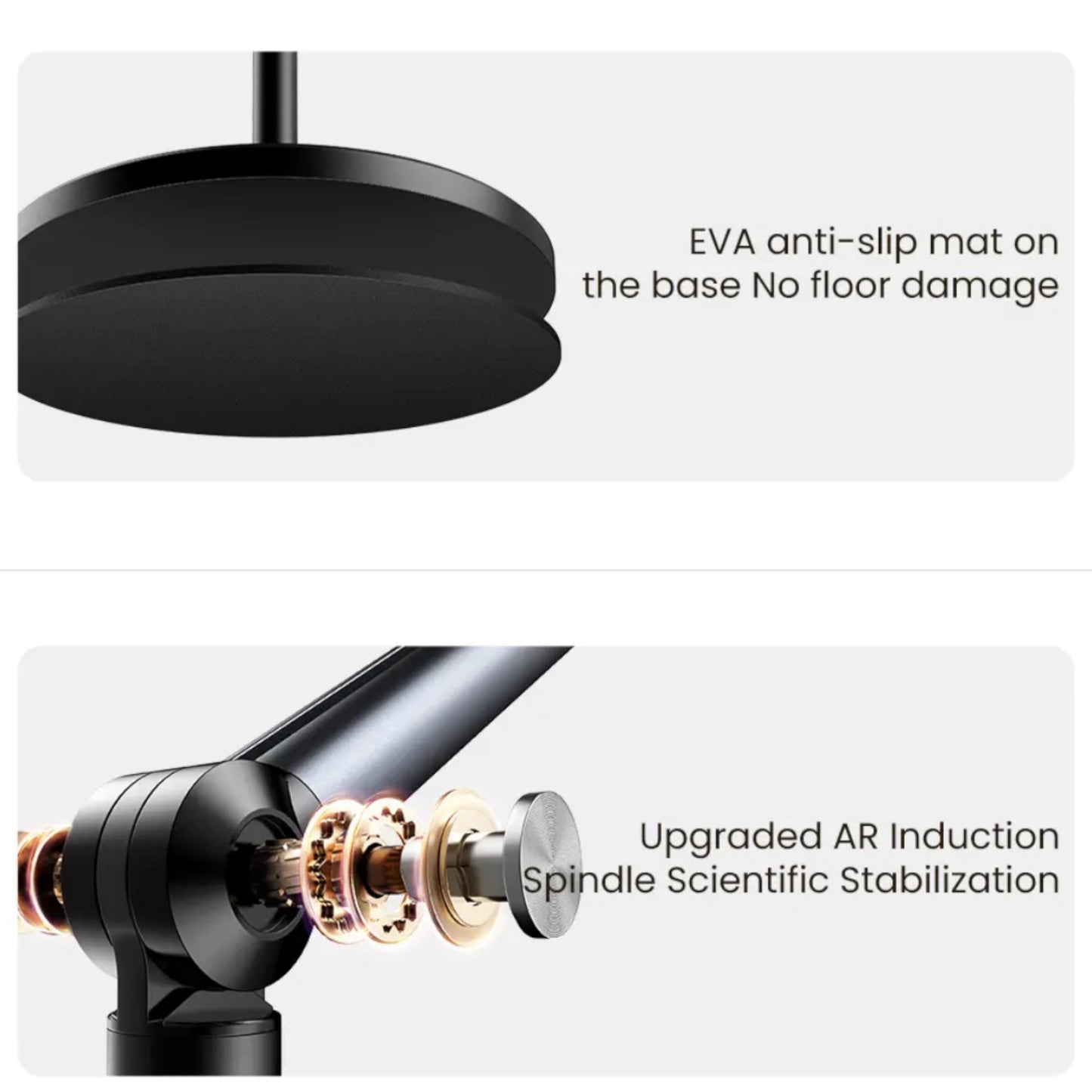 床を傷つけず滑りにくいEVAマットと高級感あるアルミニウム製のアームでインテリアにも馴染みます。