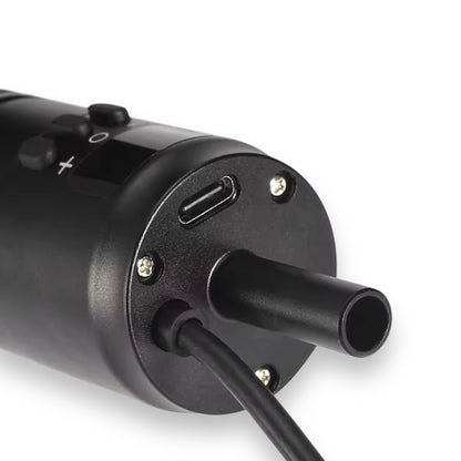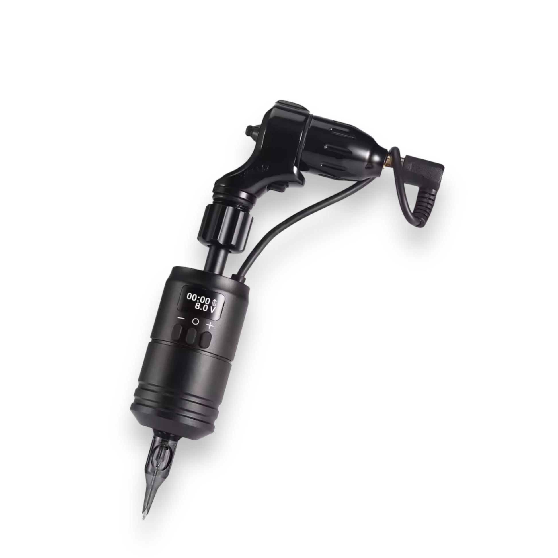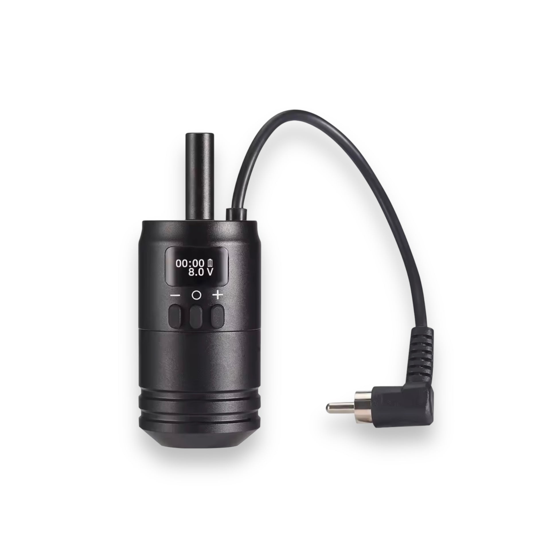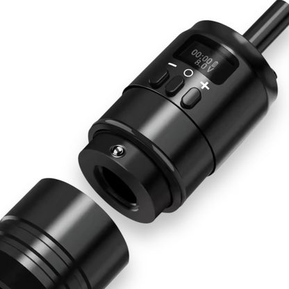 パワーサプライやフットペダルの代わりとなるワイヤレスバッテリーグリップ。ロータリーマシン(カートリッジニードル使用)に接続して使用することで、片手で電圧調整が行える画期的な商品です。