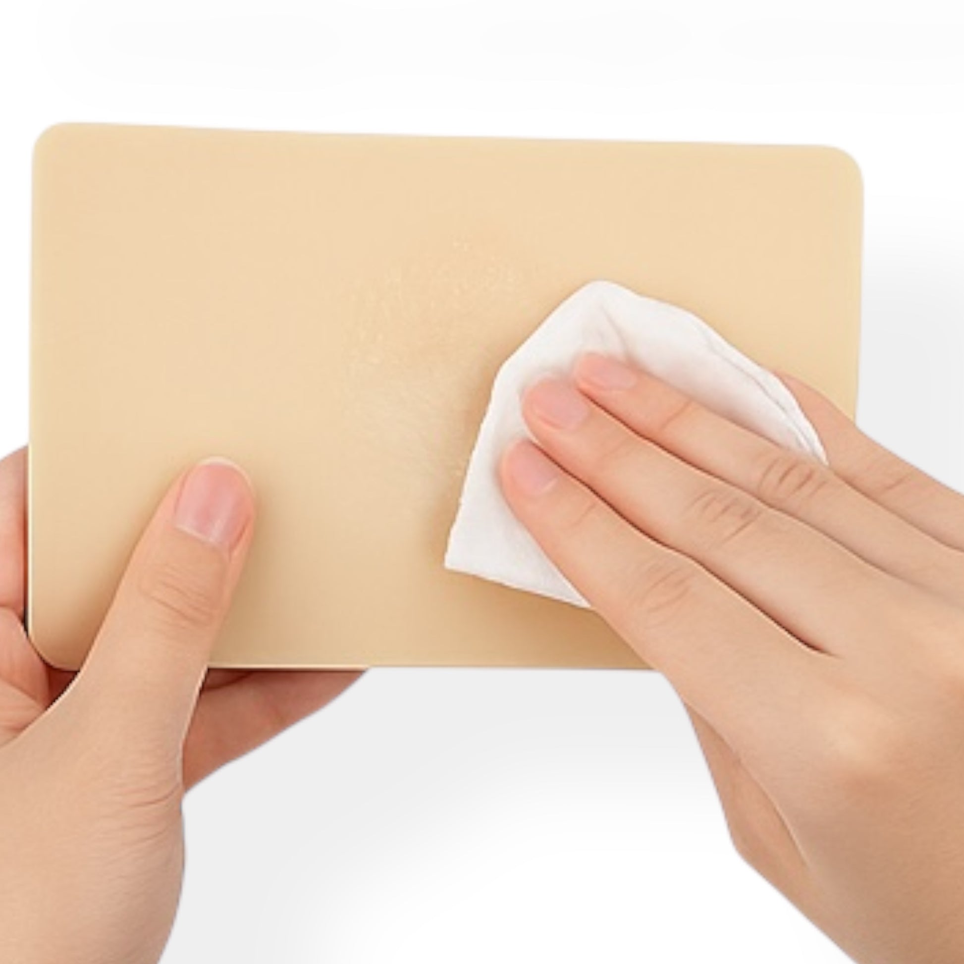 インク汚れ、指紋、油分を素早く分解し、プラクティススキンを清潔で滑らかな状態に戻します。