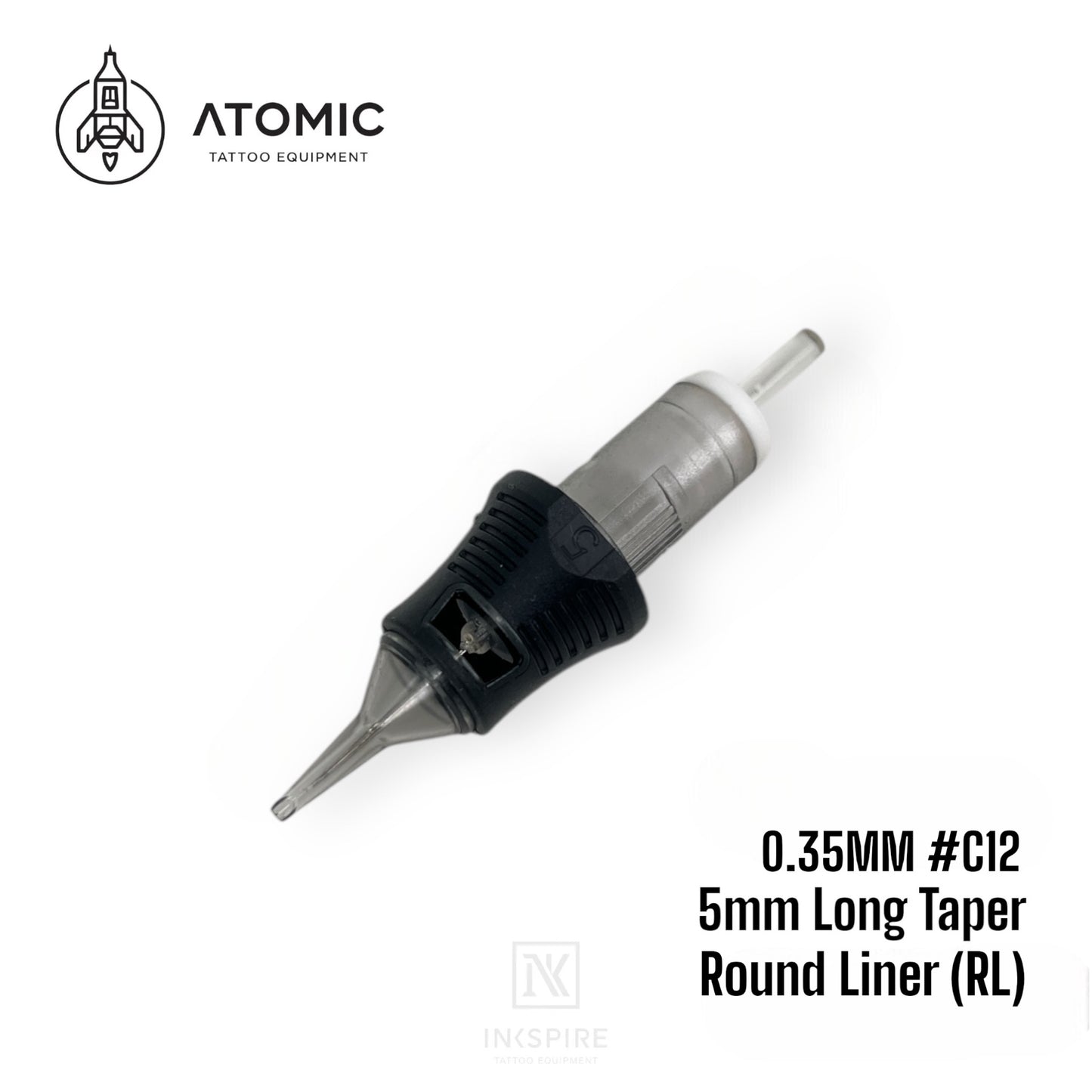 黒いシリコン部分のフィンガーレッジが特徴のATOMICカートリッジニードル。