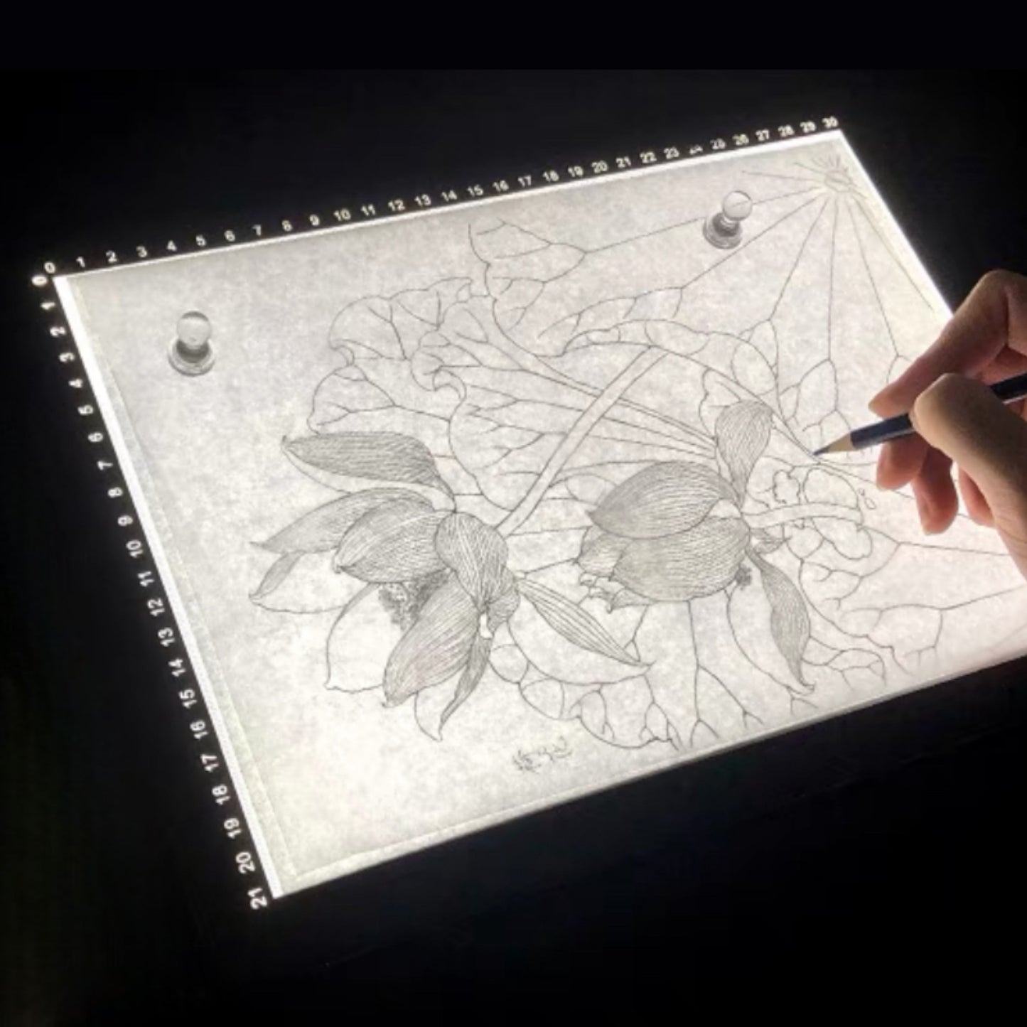 このパネルの上にデザイン・サーマルペーパーを重ねて置きデザインを転写したり、いくつかのデザインを重ねて新たなデザインの作成にもお使いいただけます。