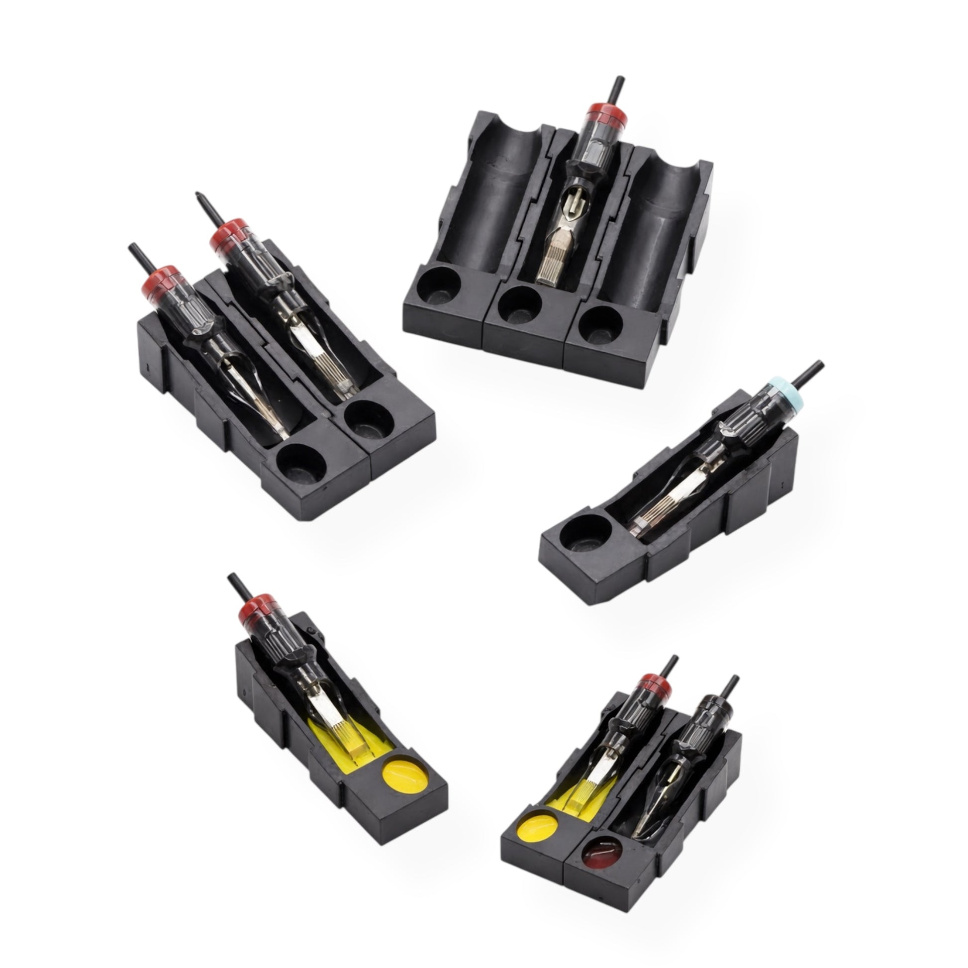 カートリッジホルダー、インクカップの配置を一つのベースに集約し、作業台を清潔かつ効率的に保つ多機能カートリッジホルダー。